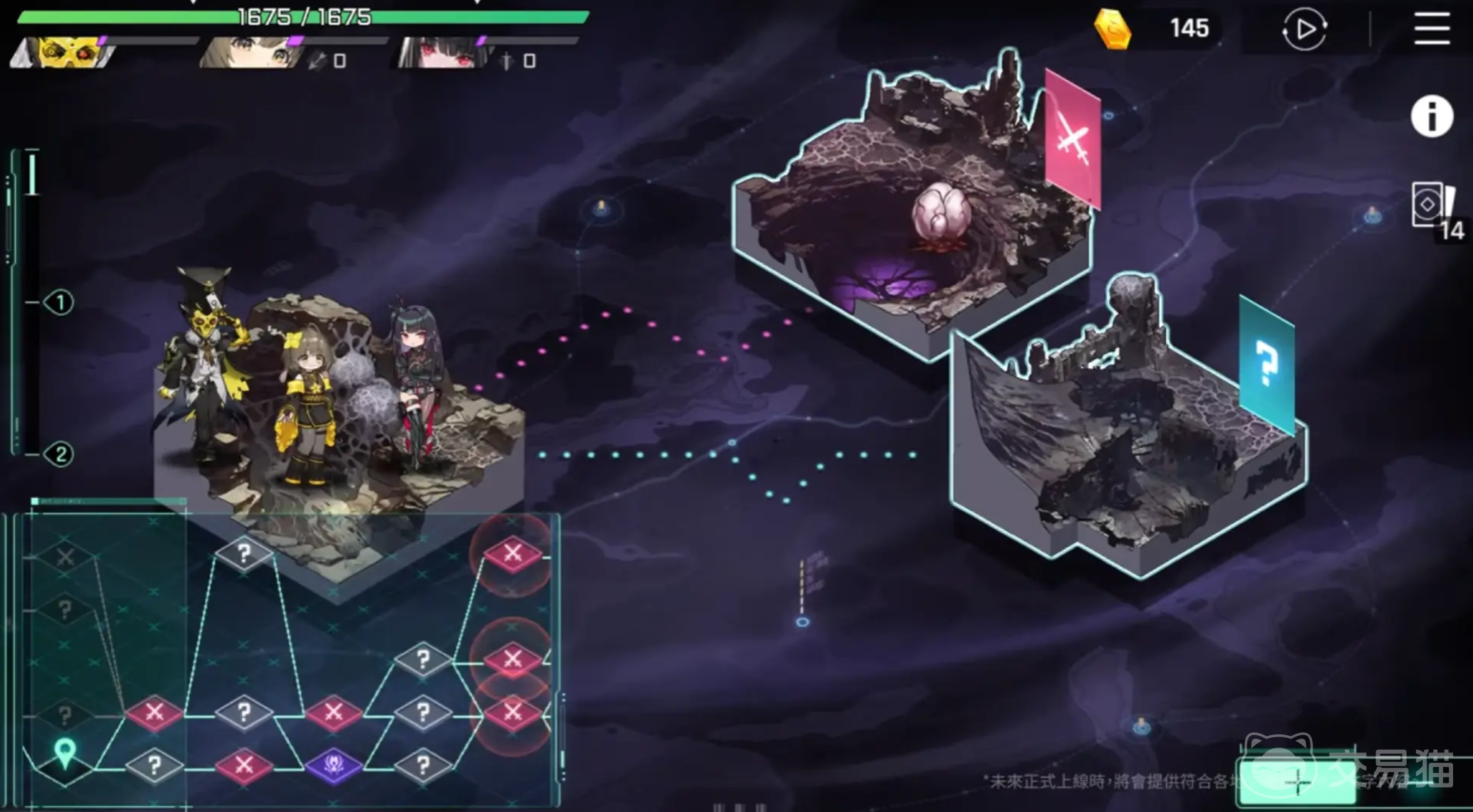 游戏采用程序生成的随机地图机制,玩家可选择进入肉鸽地牢模式进行挑战。在此模式下,角色养成、技能解锁与路线选择均具备高度自由度。合理搭配卡牌与技能组合是通关高难度关卡的关键。值得注意的是,角色在卡厄思环境中会持续积累压力值,当压力达到临界点时将触发“崩溃”状态,进入崩溃盘,部分行动将受到限制。因此,如何管理压力并制定应对策略,成为 gameplay 中的重要环节。