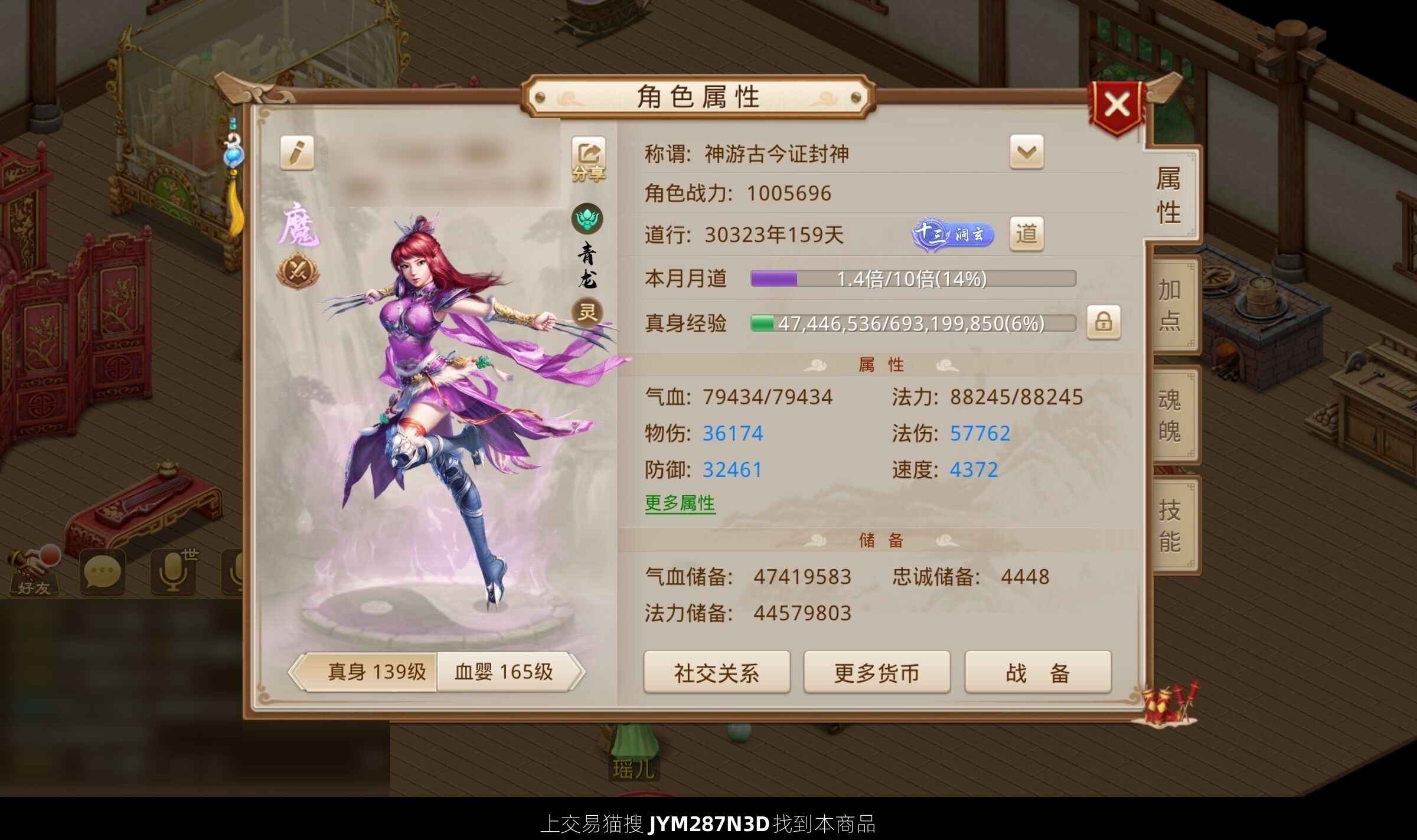 变异幻化小老虎加黑鬼年卡320天,两个时装,元宝5.7W,法和敏双加点。改六套。上手直接玩。