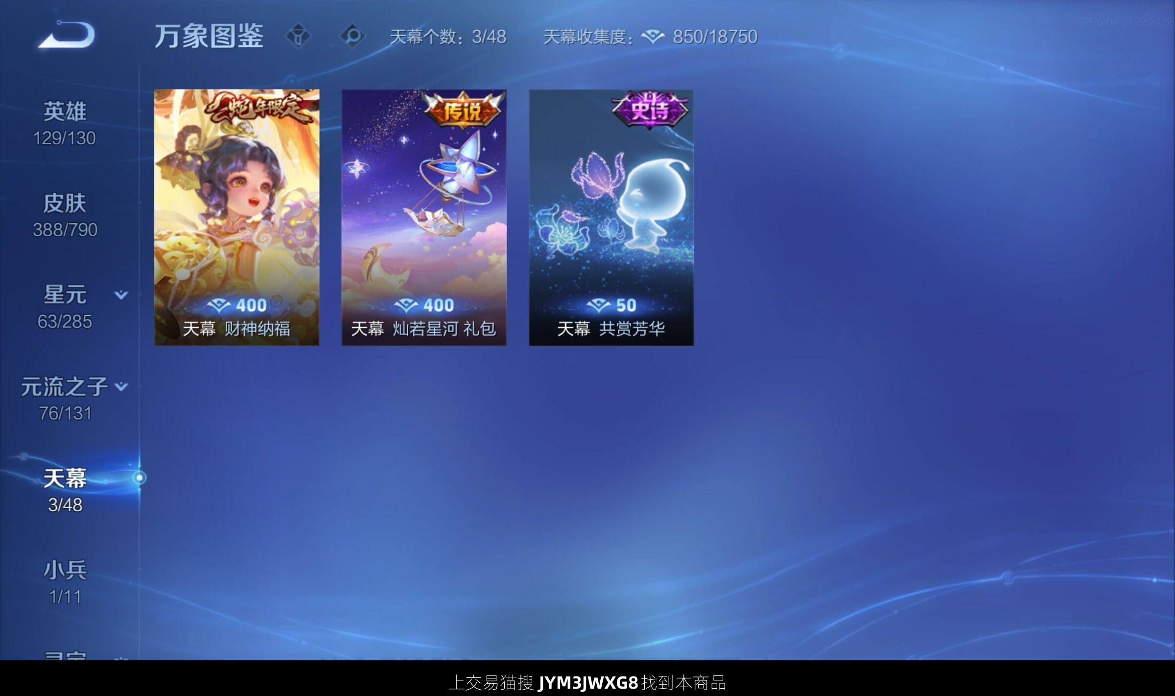 V8,800上贵9,号上还有一颗荣耀水晶 双传说天幕 极品法师女号 貂蝉全皮(包括星元)瑶全皮(包括星元)少司源全皮 女娲全皮 刘禅全皮等