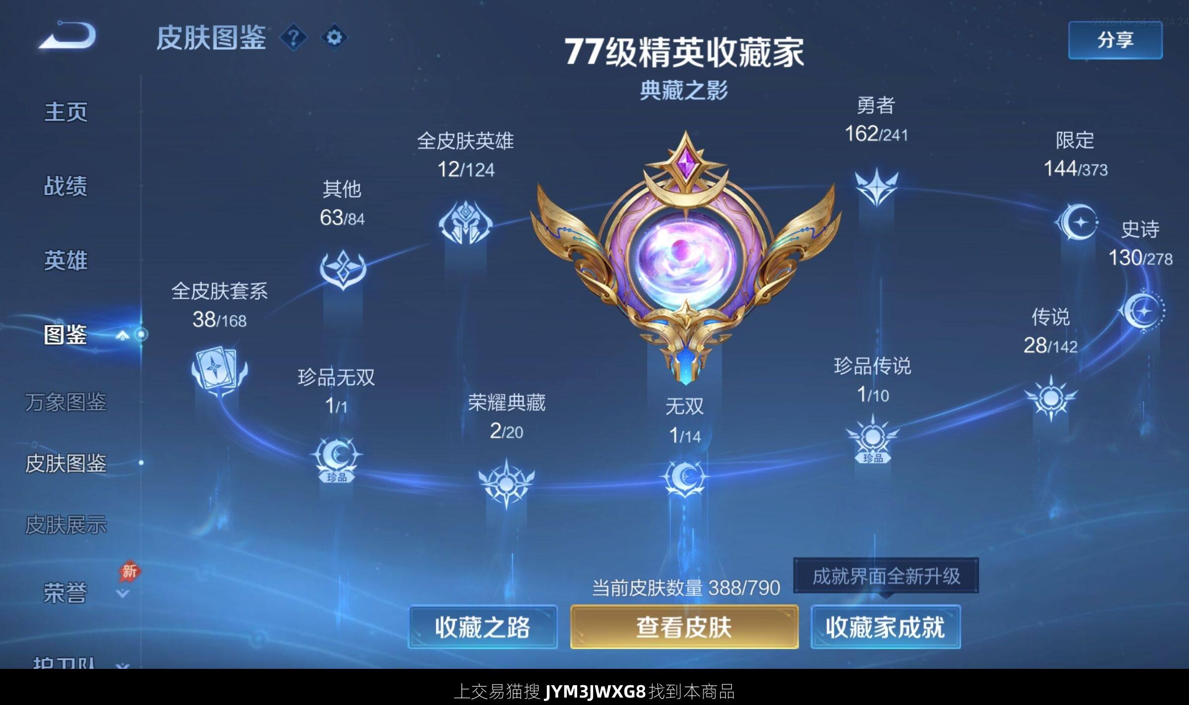 V8 2典藏 1无双 4星传说 28传说 128史诗 388皮肤 至尊星耀IV