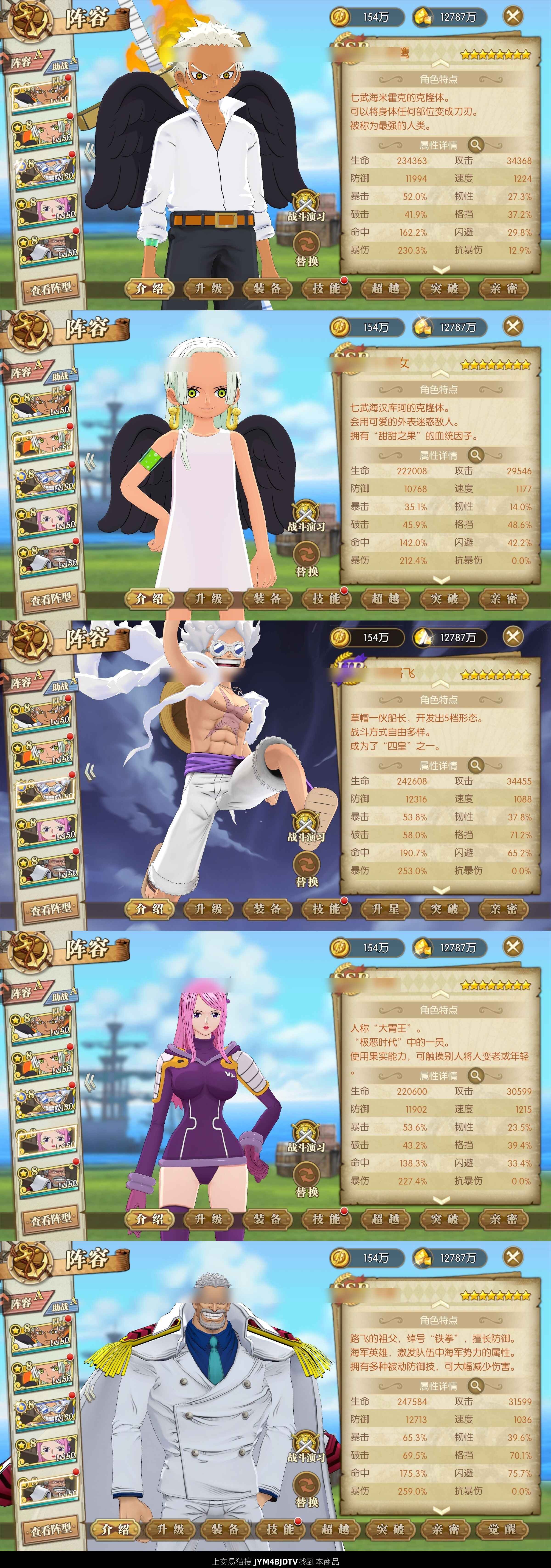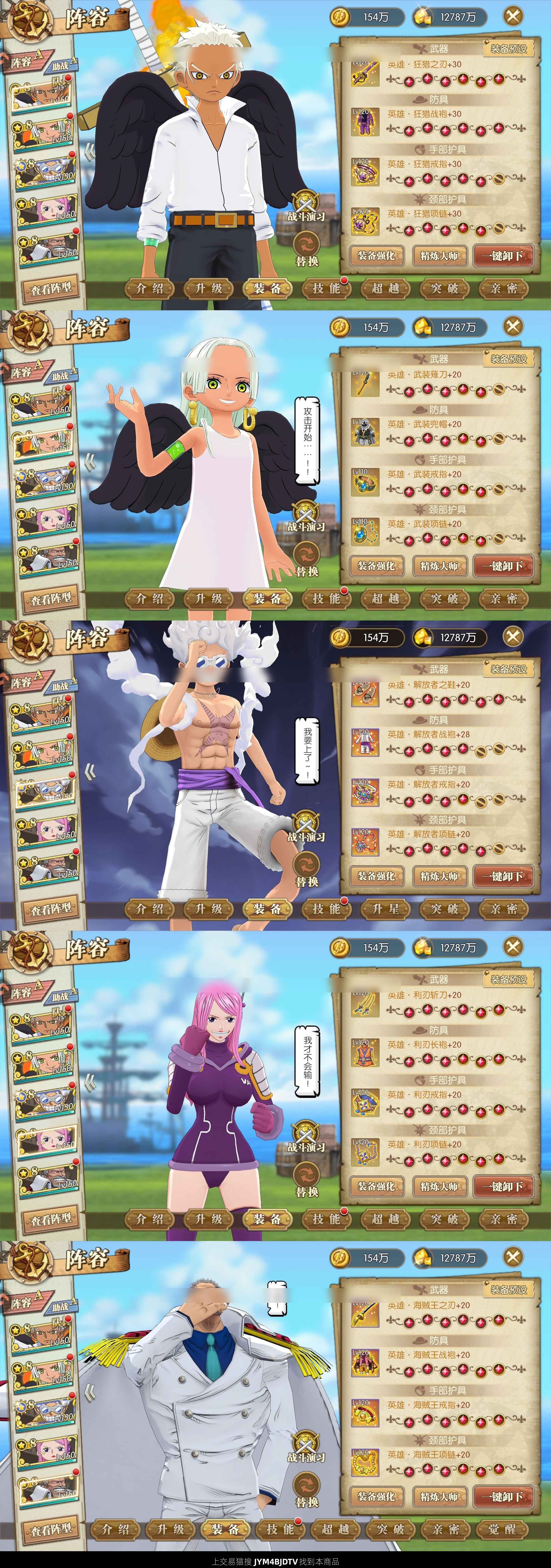 8ur尼卡路飞皮肤专属套 8ur罗杰双皮肤,专属套 8ur大妈,半套专属 多氪金套,解放,海贼王,利刃,狂猎,武装,2套毁灭,凯旋,精准等等 160铸造卷,马上可以再弄一套氪金装备,3100多战力,捡漏价,不议价,转移号,非常安