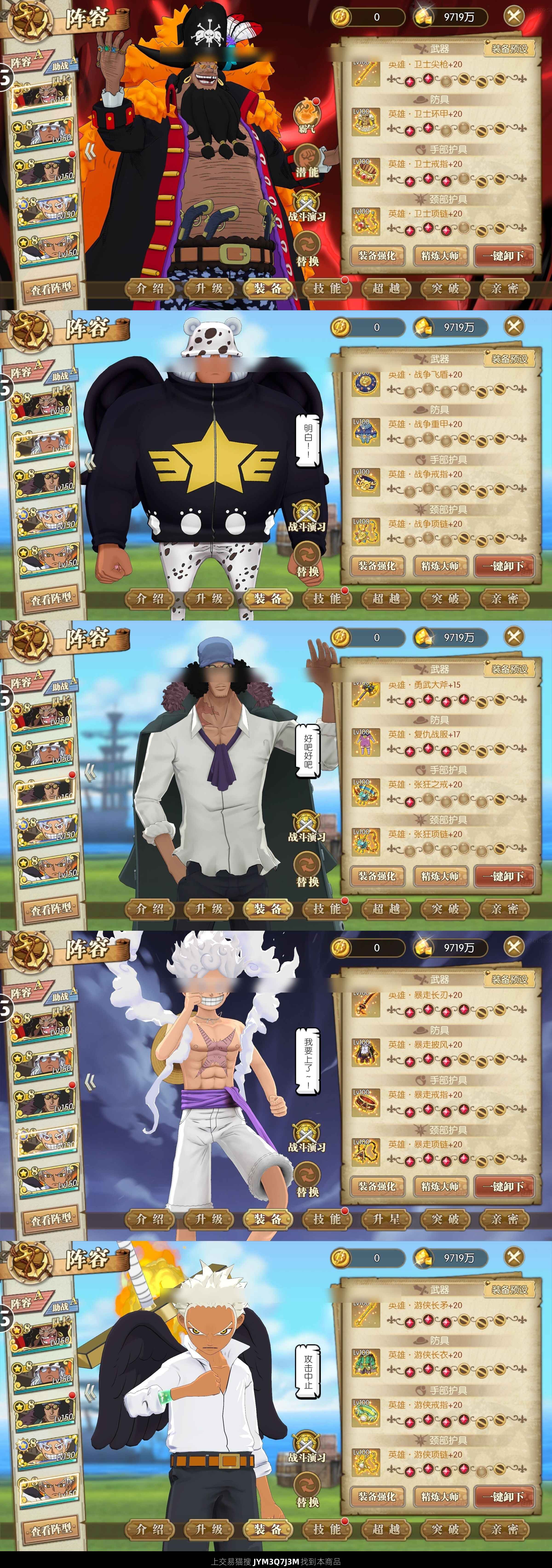 航海王燃烧意志360版本八星尼卡路飞八星sp黑胡子八星蜂巢岛库赞7星UR龙凯只缺4张碎片八星传记很多没打账号有五级阵背包还有700强者卷和150铸造卷可以去拉一套氪金装备50UR卷子还有一堆时装SSR装备自选礼盒,账号可换绑改密码安全可靠下单即可发货。
