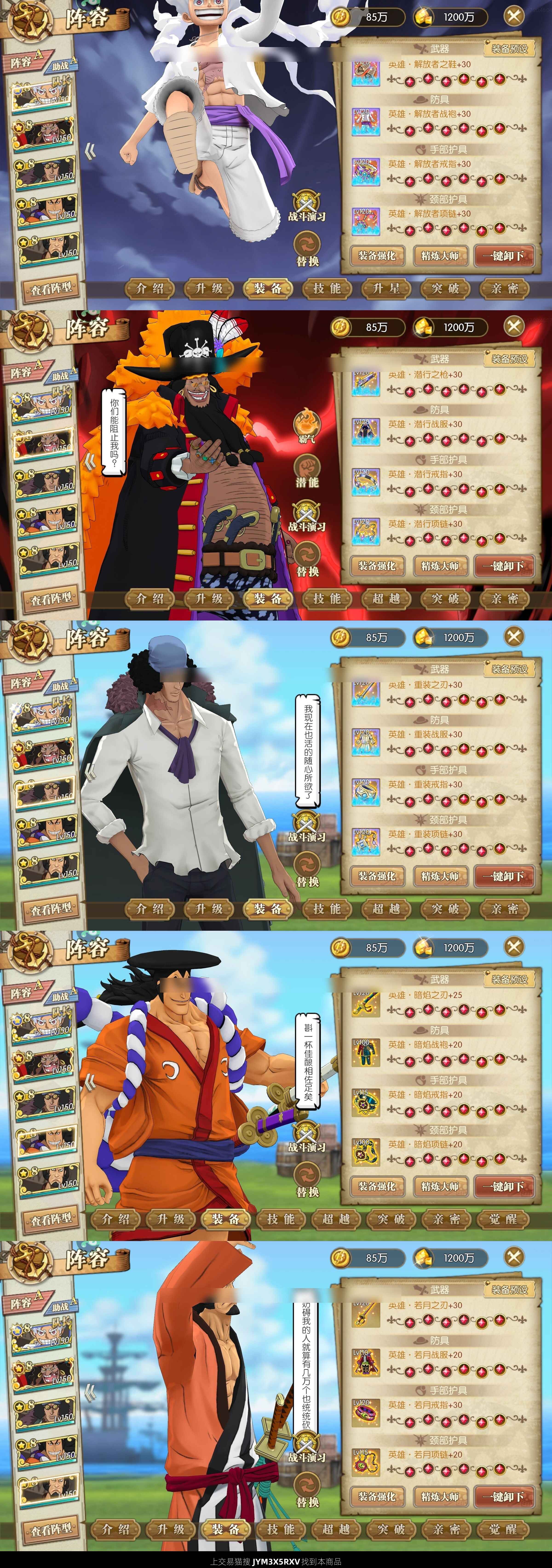 3个11级迅捷,7个10级迅捷,7个九级迅捷,16个11级速度,4个10级速度; 六级漩涡阵,家园樱花套速度已拿,天梯可上前20; 装备六套氪金套,两套若月,其中一套马上满共鸣; 龙凯已经八星,阵容只差三觉烬,强者500多张足够;