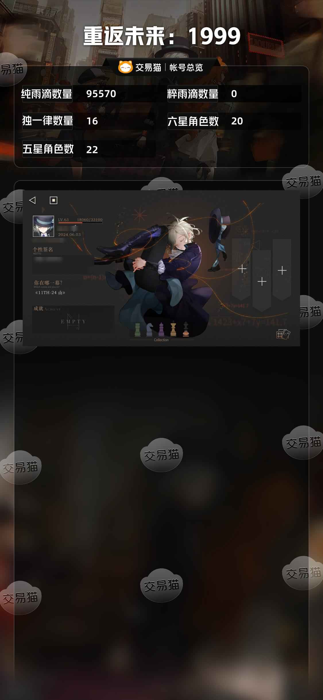 电能,薪血,启示体系齐全,有联动男女刺客,资源多,还有大量过期活动没有开,迷思海只开到300m,目前雨滴95570+兔子10,准备新巡游up,非常适合想入坑的,转生的老板。
