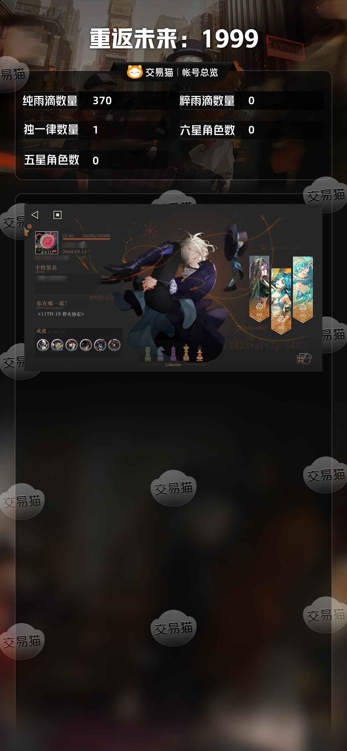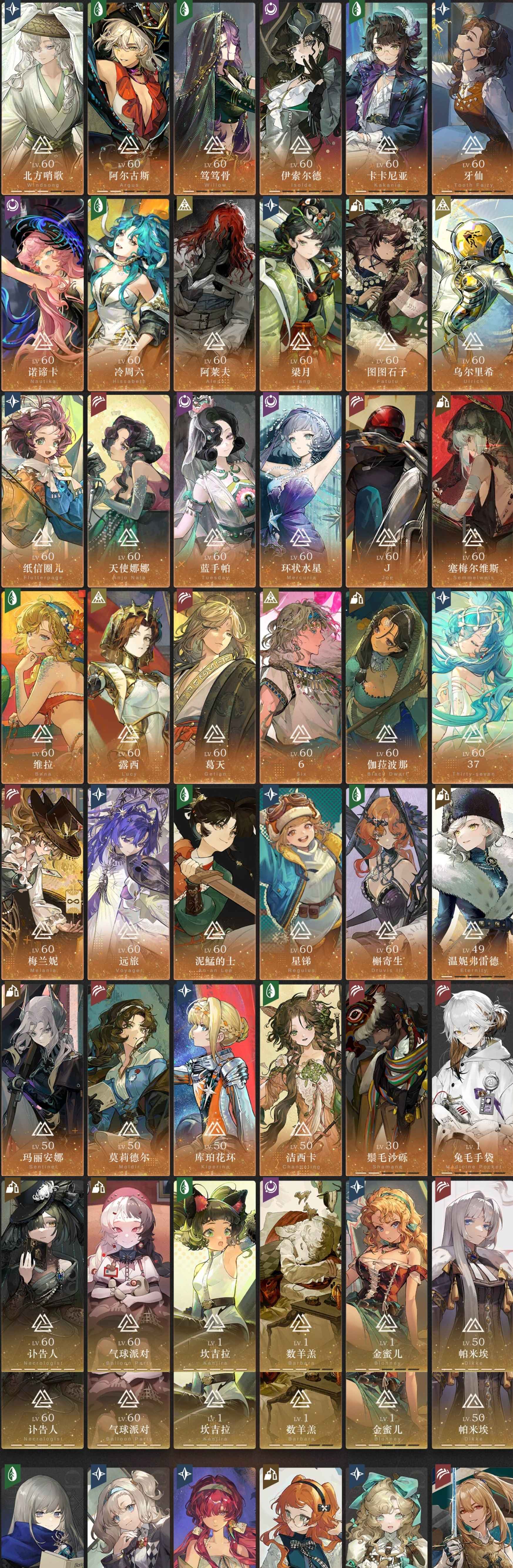 30个六星角色,基本满等级,大部分心想也已经搭配好,有300纯雨滴,大部分都有皮肤 前段时间没玩,可能少打一两个版本