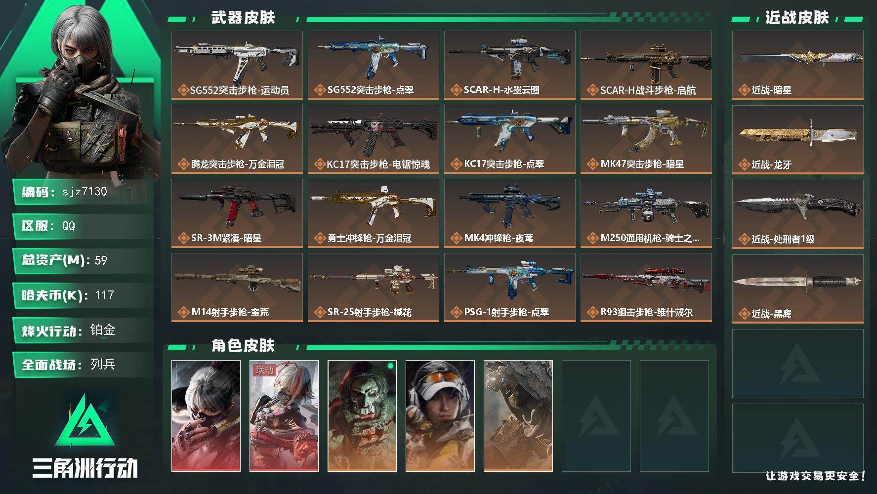 总资产59M 5干员外观 3传说近战 17传说枪械 铂金JYM3XP9SR