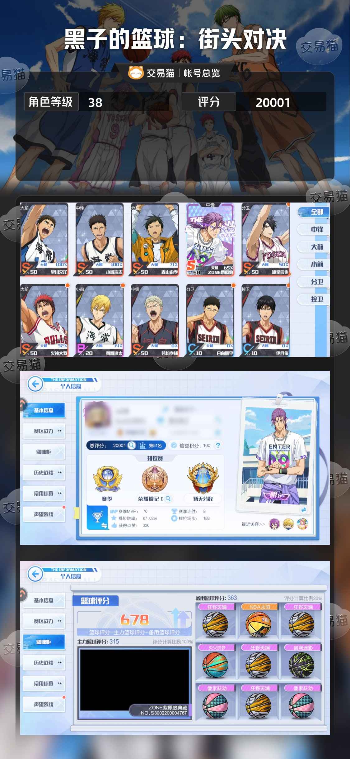 满绝zone紫,带力量皮,有月卡,号上会留钻石和点券,满天赋3绝早川,2绝满天赋若松,4级make some noise,3级卡位大师,3级空中领域,有一个zone紫金球,特性是愈挫愈勇,加篮板竞争值的,有极限的4.95金色篮板和极限的4.99金色扣篮,极限的4.76金色抗扰,3.33金色力量以及3.1金色弹跳还有一个3.1弹跳,1.4%的金色近投,还有太阳金球,有1000特性点和s2特性自选箱