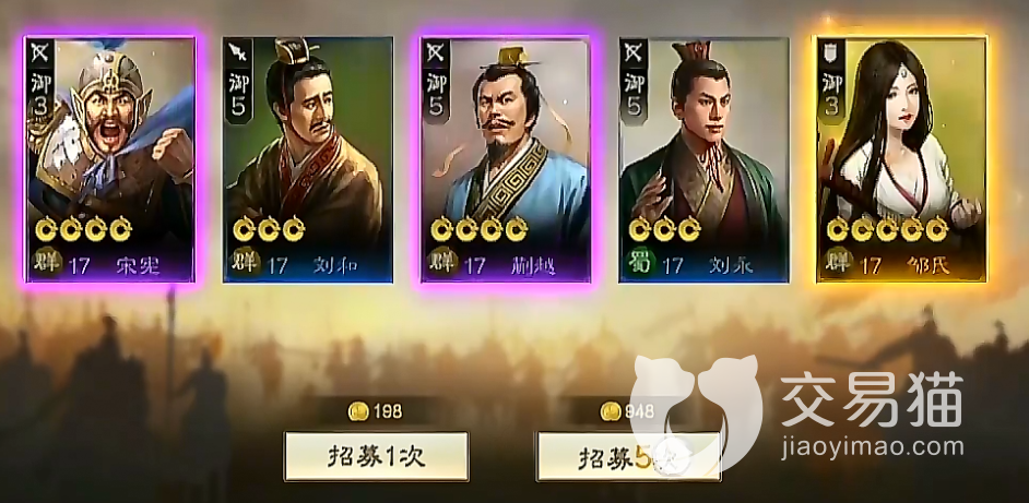 首先第一个就是通过招募获取,玩家们可以使用金铢召唤,招募一次需要消耗198金铢,最好是五连抽,获取橙色武将的概率更高,金铢可以通过充值以及完成任务获取。