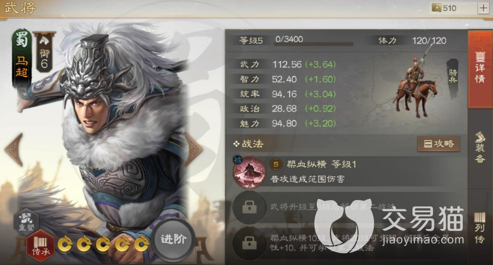在获取马超之后,玩家们一定要好好培养,这个武将各方面实力都是很不错的,属性一流,几个技能都能帮助玩家们更好地完成击杀,拥有一个满级马超,玩家们完全可以大杀四方。