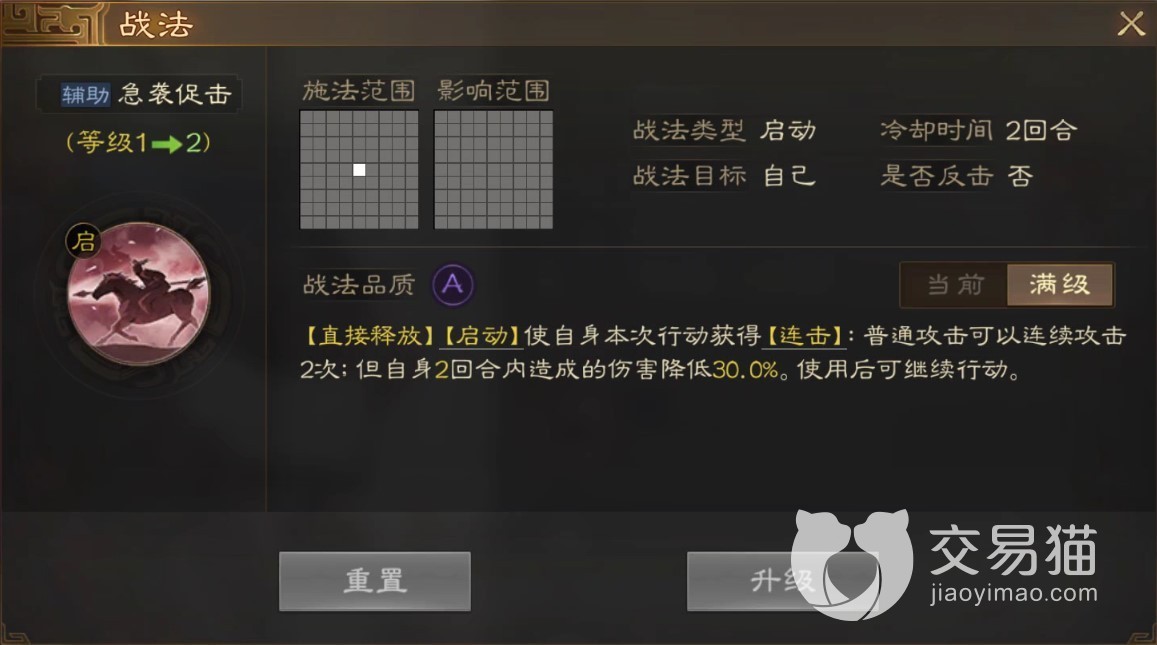 虽然没有传承战法,但在等级达到一定阶段后可以携带其他战法,这里比较推荐使用突击类战法,比如一身是胆、乘间击瑕这种,可以在自带战法冷却的时间内保持有效的进攻手段。