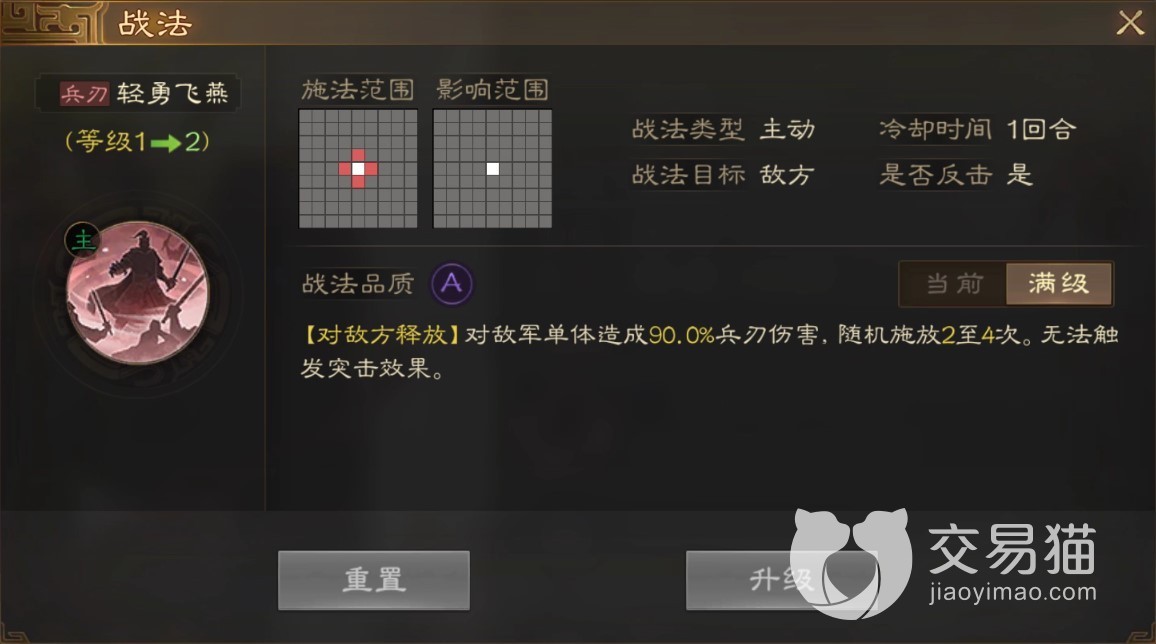 自带主动战法“轻勇飞燕”,能对敌人单体造成兵刃伤害,随机施放2~4次,所以他的伤害并不是很稳定,而且还无法触发突击效果。作为紫将没有传承战法,或者说自身的战法就是用来传承给其他人的。所以需要搭配一些其他输出类的战法,因为技能效果限制,只能搭配主动、启动、被动向。