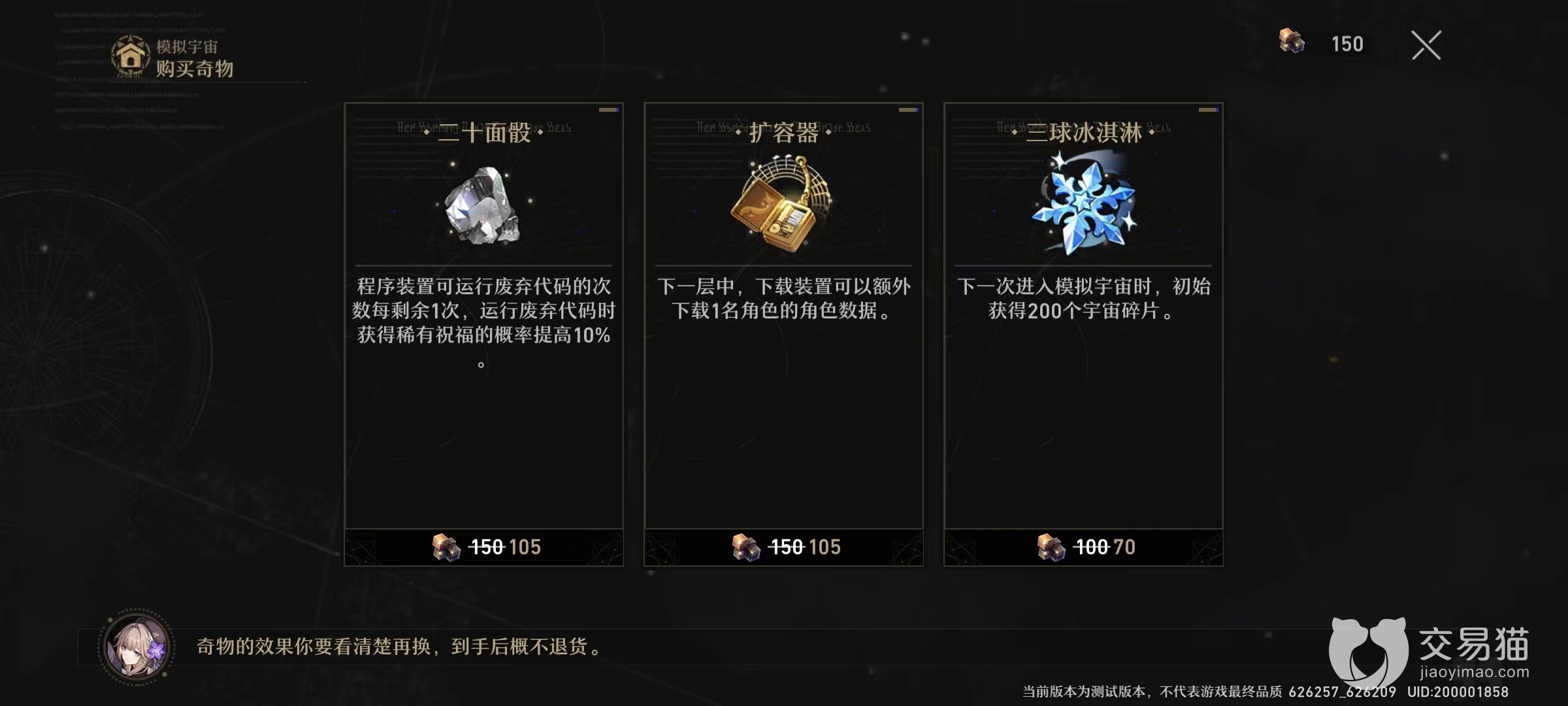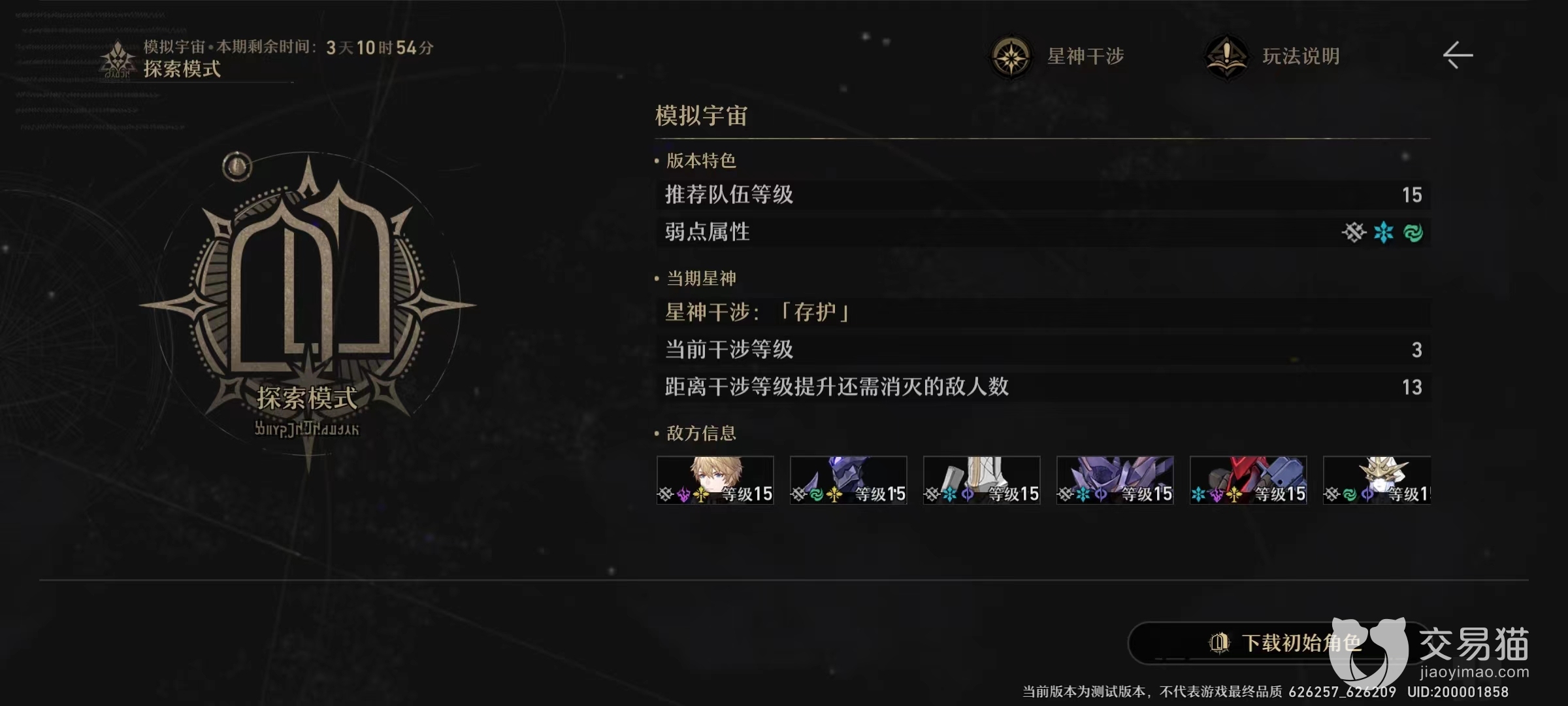 首先在模拟宇宙中玩家无法自己选择所拥有角色上场,而是系统自动挑选出角色库,只能从中选择最合适的出战。整个地图分为四层,每战斗一层都有一次休息机会,可以对上阵角色及其他方面进行调整。在战斗开始前可以获得本次敌人的主要弱点,然后在调整阵容时候有针对性进行设定,所以整场活动最考验玩家的就是对于战斗规则和弱点等方面的理解。