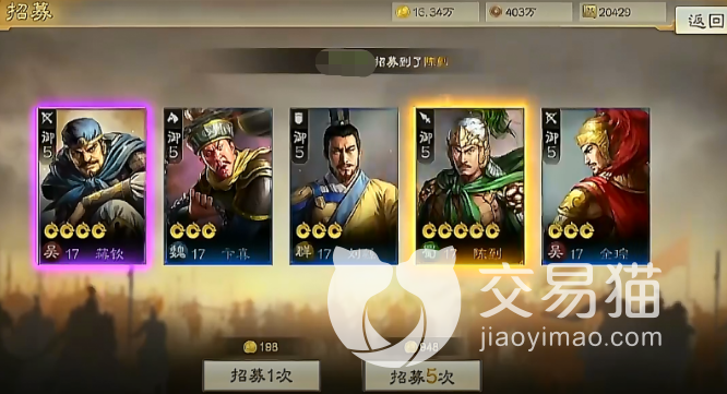 首先第一个就是最常见的招募,这个很多玩家都有尝试过,虽然获取概率会低一些,但是我们每天都有免费招募一次的机会,运气好可以直接获取一个橙色武将,运气好也可以一发入魂获取于禁哦。