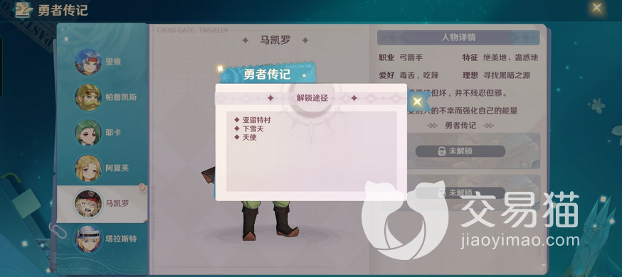 那么要怎么进入勇者传记呢?玩家们可以从旅人志进入,然后就能够找到勇者传记,点击马凯罗就能够看到对应的介绍了。这里面我们可以看到能够解锁的传记有两个,但都会设定专门的条件。其中一个就是要在下雪的天气去挑战,前往的地点是亚留特村,给出的第三个线索则是天使。等到了目的地,玩家们就需要和制定的NPC进行交谈,才能够完成后续任务。