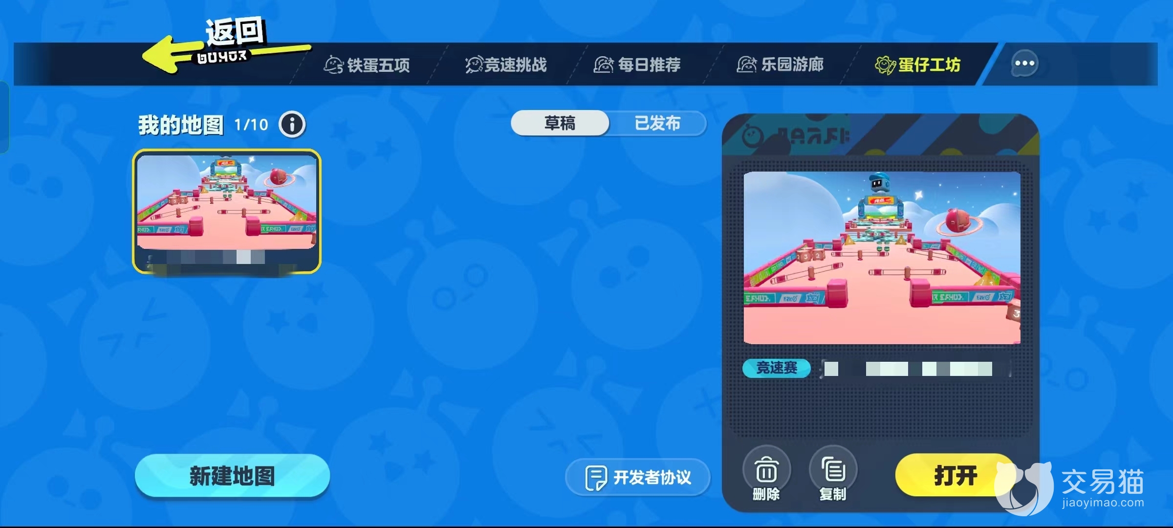 创造关卡,也被称为玩家自创闯关地图。主要依靠玩家们自己进行搭配组合,创造出一个全新的关卡。玩家想要创造关卡,第一步要做的就是创建一个属于自己的地图。玩家可以自由选择地图类型,推荐创造竞速型地图,因为竞速型地图是玩家在游戏中经常会碰到的地图,对于初学者就比较简单。