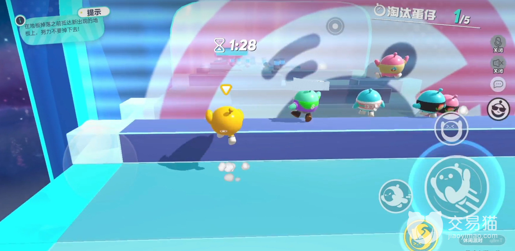 玩家一开始会和参与关卡的众多蛋仔们集合在一个平台上,面前有一个类似于阻挡的空气罩。空气造会随着游戏开始而缓慢运动,因此玩家不要傻站在原地不动,要跟着空气罩一起往前运动,因为终点不可能会在起点的位置。