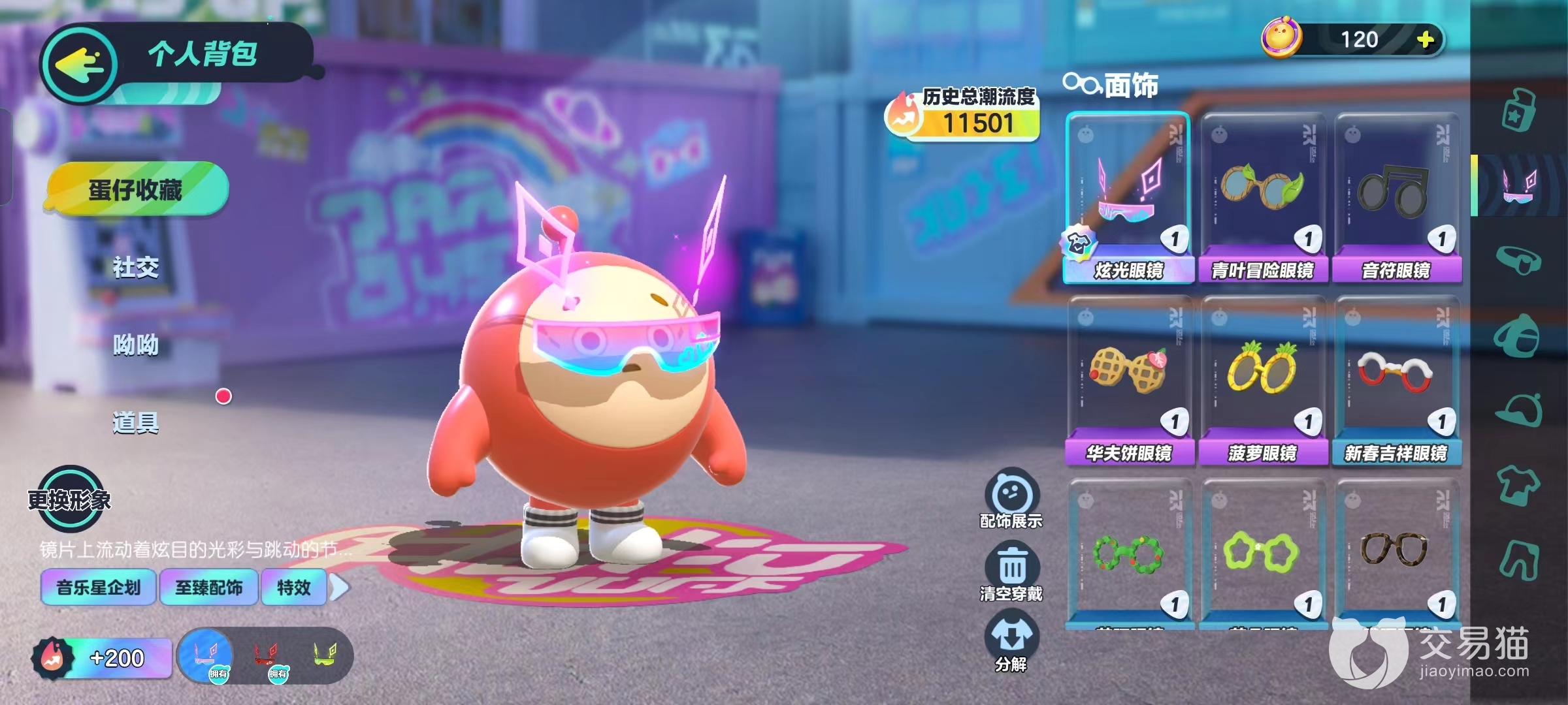 隐藏款盲盒除了皮肤以外也会出一些背饰,眼镜等,就比如现在这个赛季的隐藏款盲盒当中就出现了眼镜,这款眼镜非常符合本赛季的主题,科技感十足,眼镜上还带有会闪烁的光源,未来感也直接拉满。