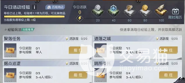 关于升级,游戏每天都会有固定的日常给大家去做,不至于像无头苍蝇一样乱做任务,导致收益很低。首先要做的就是每日里的经验任务,很直白就是给升级经验的任务,分别有聚落、遗落之城、据点巡逻等四种,对应的游戏体验也不同,有组队有独狼,除了下副本还有据点战,涵盖了开发者希望大家不要漏过的玩法模式,而且战斗本身也有经验,熟练之后,甚至在半小时内就能清空四个任务,还能体验到组队的乐趣。所以这些是性价比最高的任务,升级的话,刷每日经验的优先级最高。此外每日里的活跃任务也可以顺带做掉,虽然不怎么给经验,但给的实用道具比较多,属于每日必清的任务。