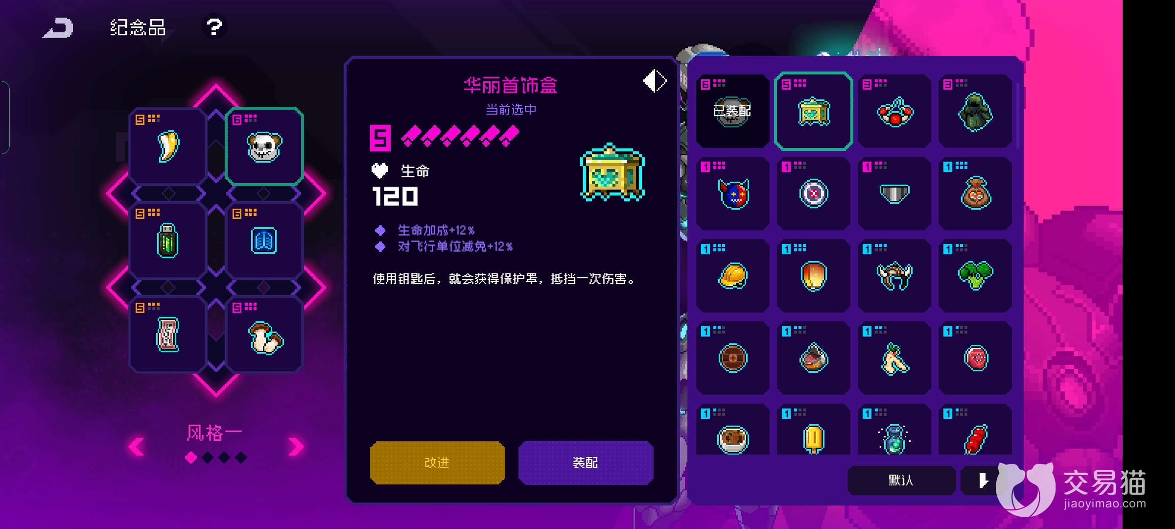 还有携带华丽首饰盒,这个物品也是满镀层的物品,携带这个东西之后开箱子可以抵挡一次伤害,不要小看了这个的作用,很多玩家在攒雅典娜点数的时候很多都是开场被小怪刮到损失了不少的点数,而且约到后面怪的伤害越离谱,摸一下半管血的事情常有,有了它就似乎多了半条命。