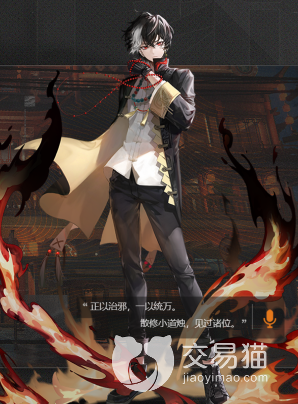 首先要给大家介绍的是来自于官方认证的杂志封面主人公烛,一身黑色镶金边后现代唐装,搭配白色挑染黑短发,在女性玩家中有着不小的人气。作为一名实力强劲的风水师,自幼学习道法,精通各类型风水相术,看起来是一个孤僻寡言的冷面男神,但实际会发现,其实也有笨拙的一面。