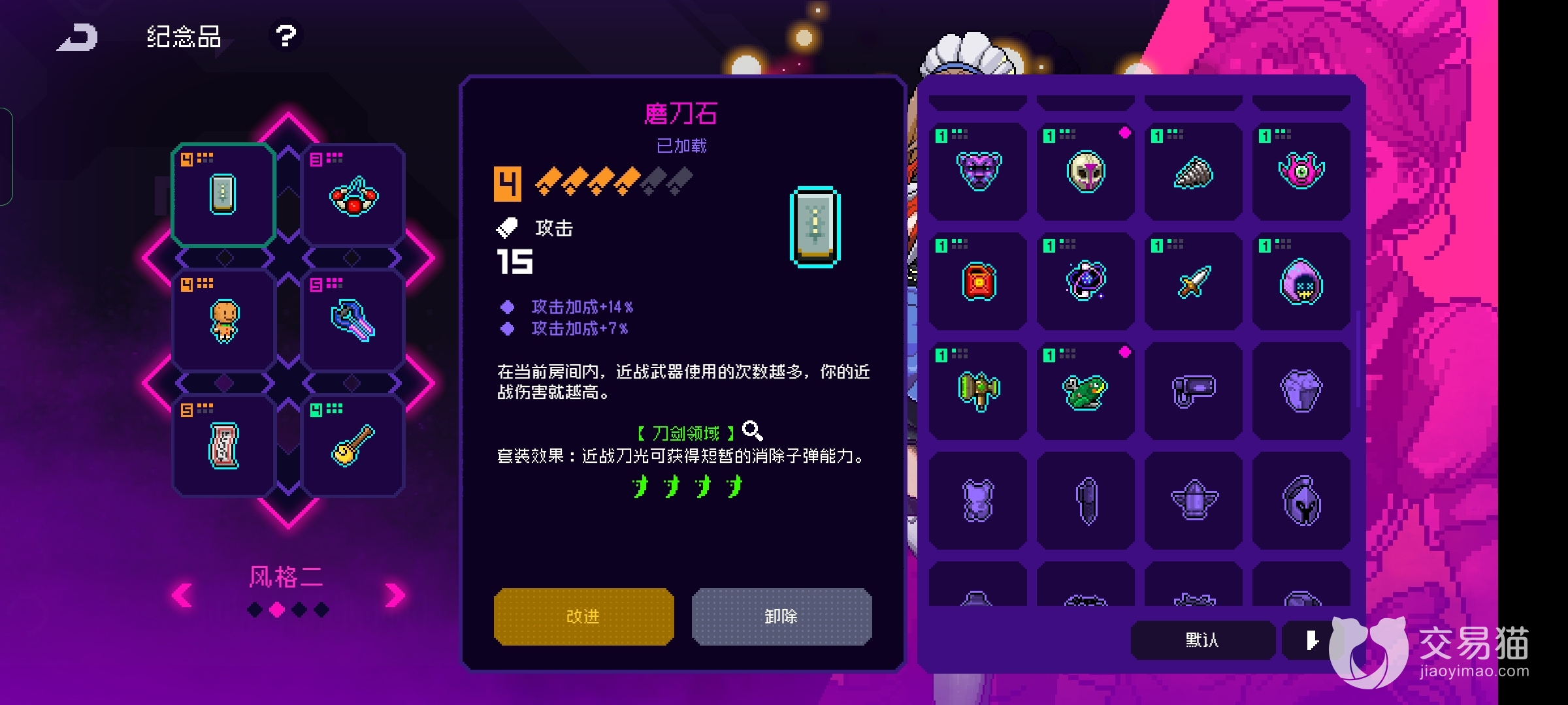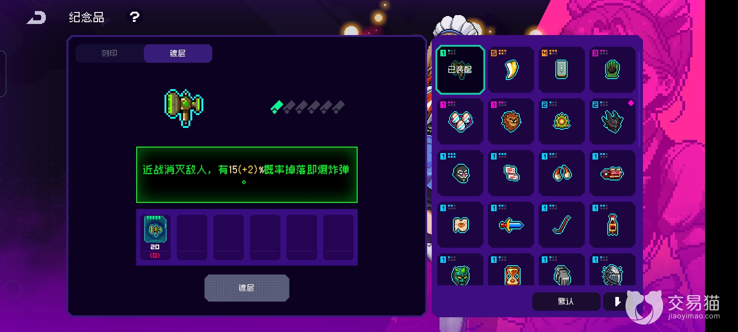 首先就像开始提到的一样这个物品的品质是绿色的,主要增加攻击的属性,但是有五次镀层和五次刻印的机会,但是全部加满也比不上高品质的物品,主要就是看它的效果,近战击杀敌人掉落地雷。