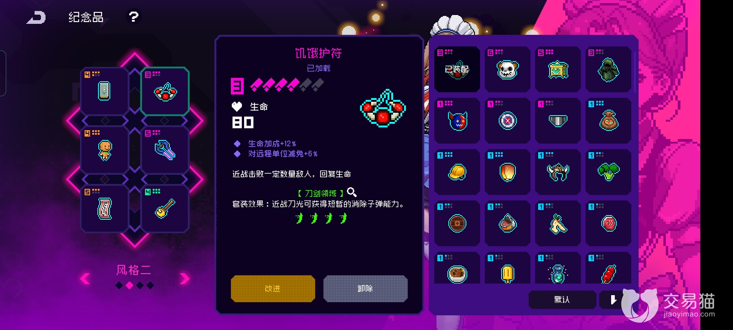 最后玩套装一定少不了能量剑和饥饿护符,这两个可以增加续航效果保证自己能找到和这个物品相符合的道具,不然虽然地雷伤害很高但是自己也死了不是适得其反吗。
