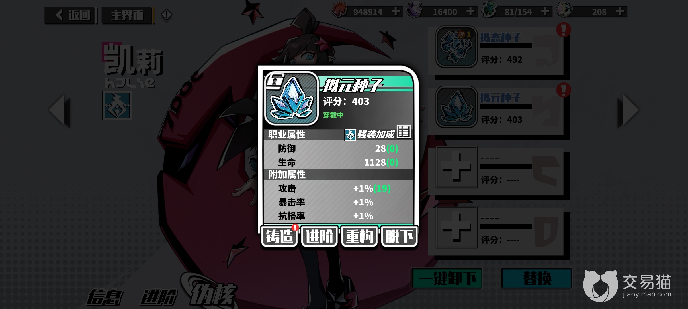 装备选择上肯定是要选择加双爆还有伤害的,这是一般输出都需要的,只是这个角色可以适当低要求一下暴击,毕竟自带暴击,本身只要技能释放得当都是可以触发暴击的效果,只要有适当的培养伤害非常的高。