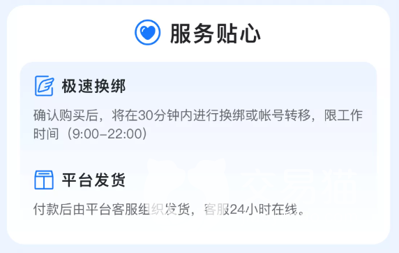 活跃玩家的数量影响卖号的难易度,而交易猫汇聚了大量黑暗光年的活跃用户,在这里出号更容易被买家看到。还有些卖家担心账号交易过程不在线导致错失成交,而在交易猫平台上卖号就没有这样的顾虑。因为交易猫售号是由平台客服专人发货,发货后30分钟内改密换绑也是由客服来进行,卖家更加安枕无忧。
