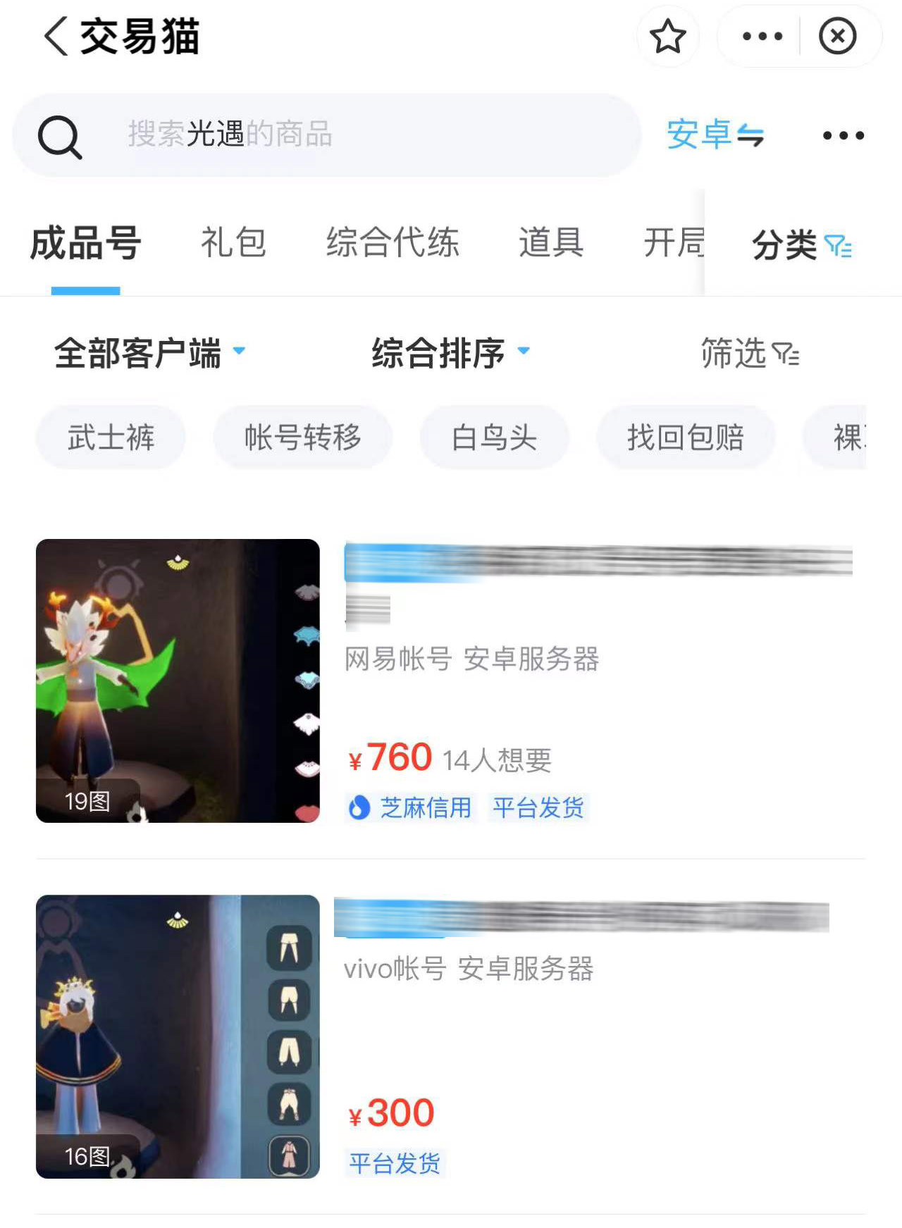 光遇之所以吸引了大批的玩家,还是因为其游戏内的画风以及风景太过唯美,引人遐想。但是如果有强力账号去玩的话,则可获得更好的游戏体验。交易猫则可提供良好的平台供大家交易光遇安卓国服号,那么该平台具体能为大家带来哪些服务呢?