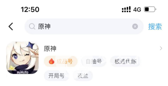 大家在搜索平台里面直接搜索原神,就会发现它是有自己专区的,并且交易的种类丰富,除了有成品号以外,还有自抽号以及开局号,包括像夜兰、凌华这类热门角色号,也能看到,利用筛选功能,可以精准的定位自身喜欢的游戏号,就单这一点,让很多平台就望尘莫及了,况且里面还带来了极速代练的服务,让时间不错的玩家,也能有选择的余地。
