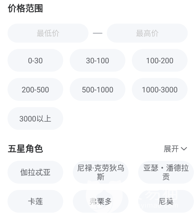 1.买号是真的便宜,估计不少小伙伴都比较看重这一点,并且小编发现,任何一款游戏,玩家们对于账号的价格都十分敏感,在FGO当中也不例外,将配置展现出来后,这个价格是否配得上,一看便知,而在交易猫中,其账号价格普遍优惠,买家们买到手也非常合适。如果实在是预算有限的话,可以在浏览账号之前,在右上角的筛选中将账号区间提前设定好,接下来就会为大家推荐对应账号了。