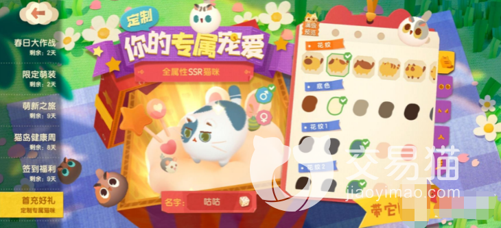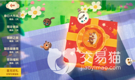 其实目前为止大家定制猫咪的方式不多,只有通过充值才能参与,所以说目前只有一个定制猫咪的玩法,大家在首冲的时候可以看见游戏中的首冲好礼,在好礼里面大家可以看到一只空白的猫咪,这只猫咪只要大家充值过了就可以成为你的专属猫咪。