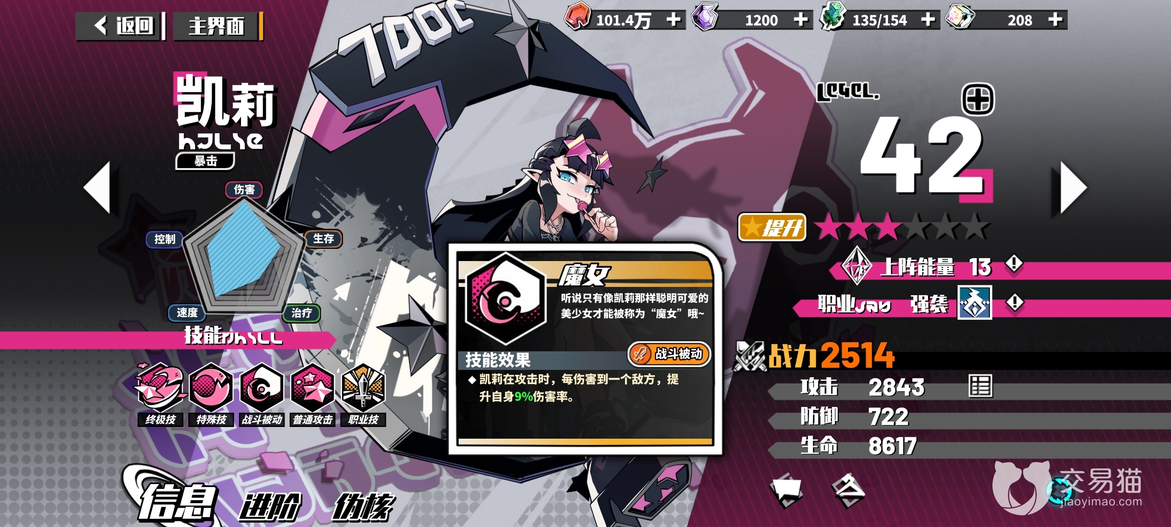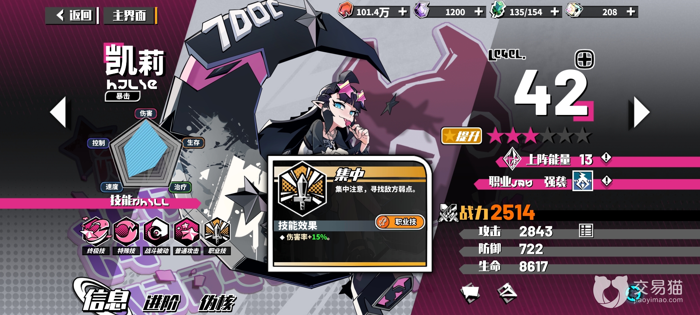 以上就是寻光之旅凯莉技能的介绍了,所有的技能就是这些了,满星和非满星完全不是一个角色,非满星不建议玩这个角色,但是要满星还是比较肝的,对于补充队伍的攻击短板还是很有用的,毕竟13点能量的输出还是很不错的。