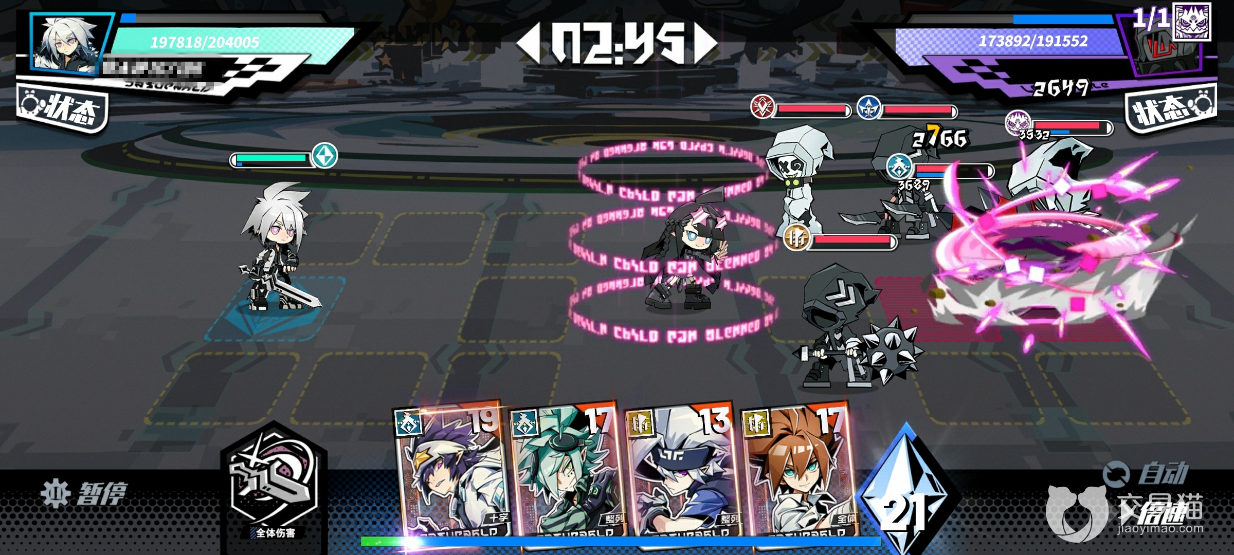 然后是特殊技能月刃,概率释放的技能伤害比起普攻要高上不少,但是只能攻击一个敌人,没有觉醒之前触发的概率非常的低,所以并不依靠这个技能打伤害,主要就是有概率补充伤害。