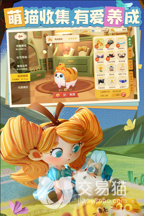养成作为游戏的主要玩法,玩家需要通过各种渠道来收集自己喜欢的喵星人并且将他们培养起来,同时在完成各种剧情任务中获取大量设计精美的时装和家具来打造自己的猫咪和住所。