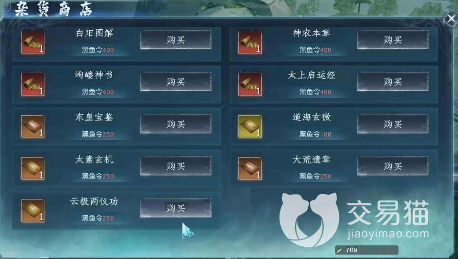 除了给何总功法之外,他还会出售一些秘宝和技能,都是需要用到不同数量的黑鱼令才能获取的。按照多数功法对比,这里从岣嵝神书中能够获取到的加成并不是很实用,所以建议大家谨慎入手,可以去收购一些比较强势的其他功法。