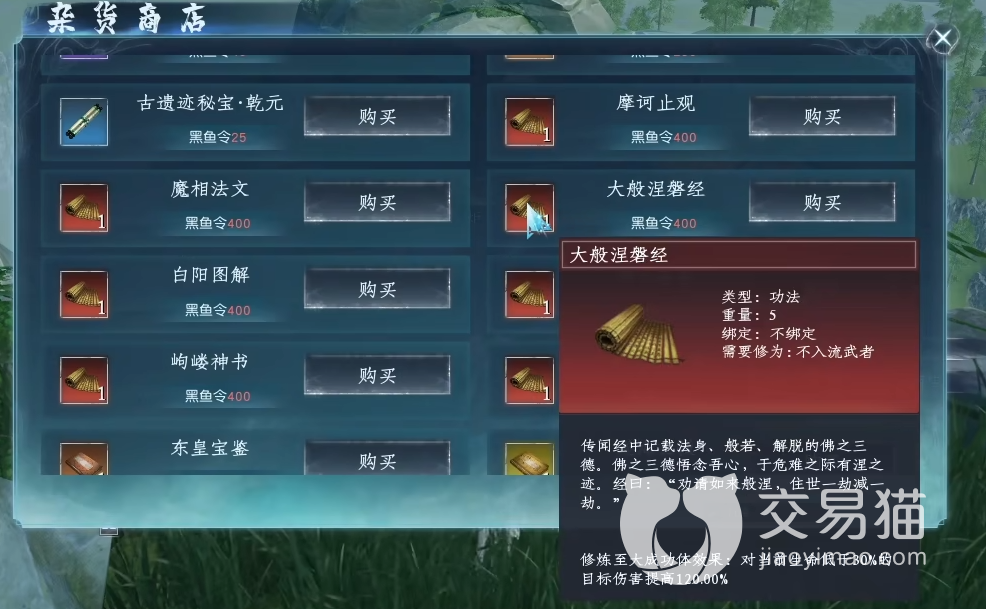 此处的这份功法想要换取是需要用到黑鱼令的,各位如果没有这个道具的话,还要先去获取才行。那么本期有关蜀山初章大般涅槃经获取途径的内容就讲到此。