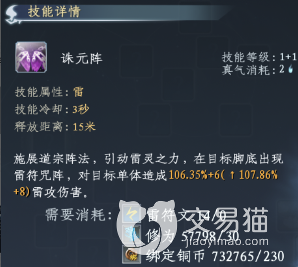 而金系的这个阵法是需要去往德武堂这个位置,在那钓鱼的地方进行采集获取。不过大多数的技能都是需要去商人那里使用道具兑换的。例如这个土系的诛元阵,就是需要在苍莽山寻找黑石商人,在他那里就可以买到。