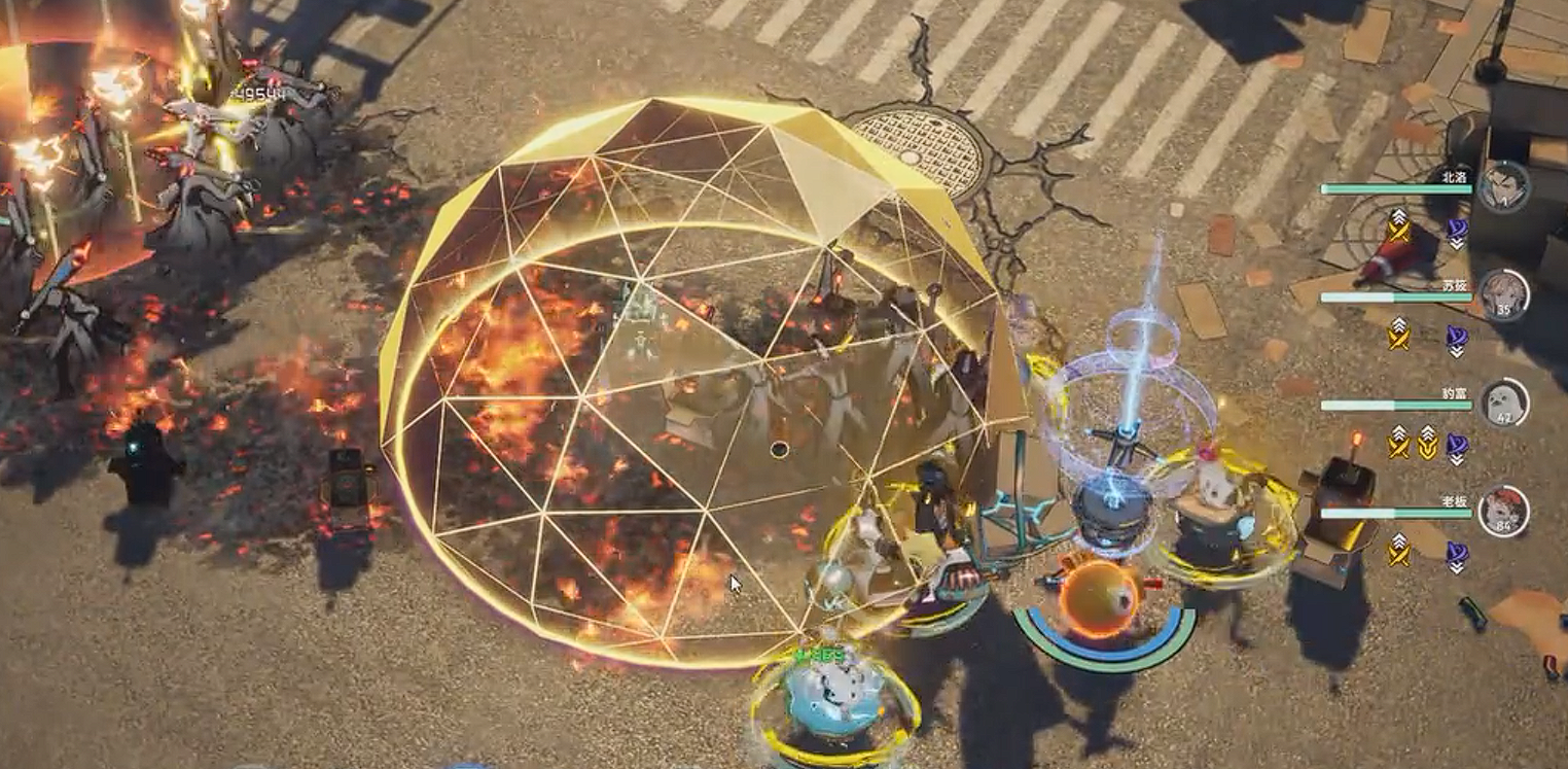 基本上靠着一手炮台和无人机配合上治疗,就可以应付的了绝大多数的副本。当敌人强度逐渐增大的时候,实在撑不了,用老板开大,最后一波输出的同时,并切辅助释放屏障,扛住冲击就可以了。然后面对boss就更加简单了,这时候就不用管什么防御了,将我们的瓦卡沙拉上来,全场降雨增加伤害,然后各单位由大接大配合元素反应,将输出拉到最大化一波将敌人boss歼灭,基本上就可以过关,操作起来无非就是多换一下人,没那么繁琐。