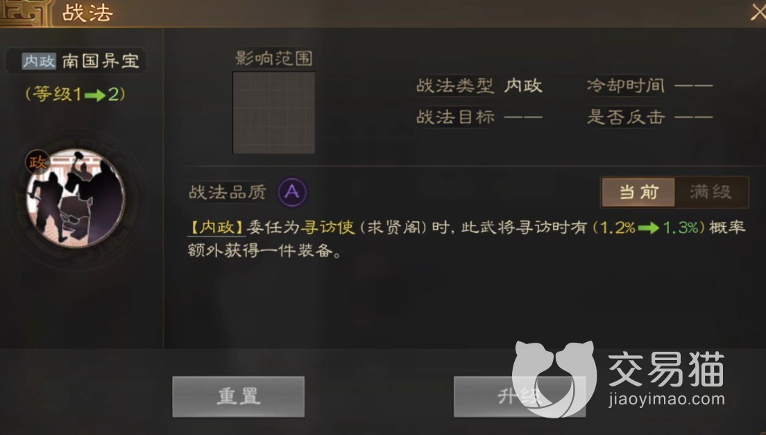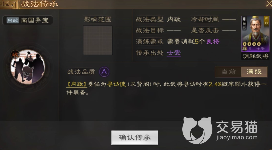 这个战法经过不断的升级之后就能够不断的提升获取名将以及装备的概率,因此士燮这个角色可以说是上是非常不错的。玩家会使用的情况下,士燮会给玩家带来无穷无尽的收益。