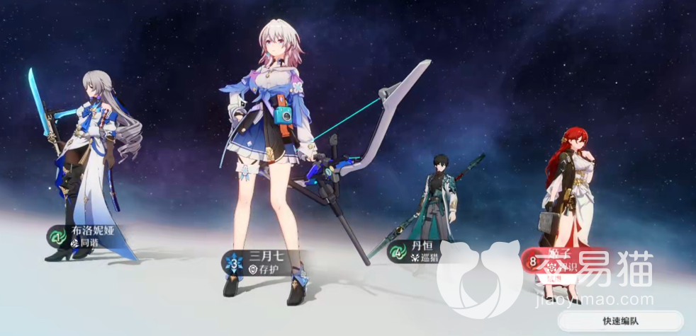 玩家刚开始肯定要开始抽卡不然的话只能依靠主角和开服赠送的角色才能组成四人队伍,在这里就能接触到游戏的武器光锥系统,类似于卡片的小玩意,这些东西的作用和其他游戏里面的武器如出一辙,只是携带不同的该物品只能改变战斗的属性无法改变角色的攻击方式以及携带的武器,每一个角色的外观武器是随着角色出现的,也就是一个角色只会有一个固定的武器,每个武器模型独属于一个角色。