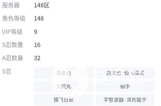 2.多角度的信息展示,让账号交易变得更安全。所有在售的账号,都需要将自己号内的信息,完整地显示给买家。就以火影为例,卖家需要将账号的级别,包含忍者的数量和稀有度,逐一地罗列出来。