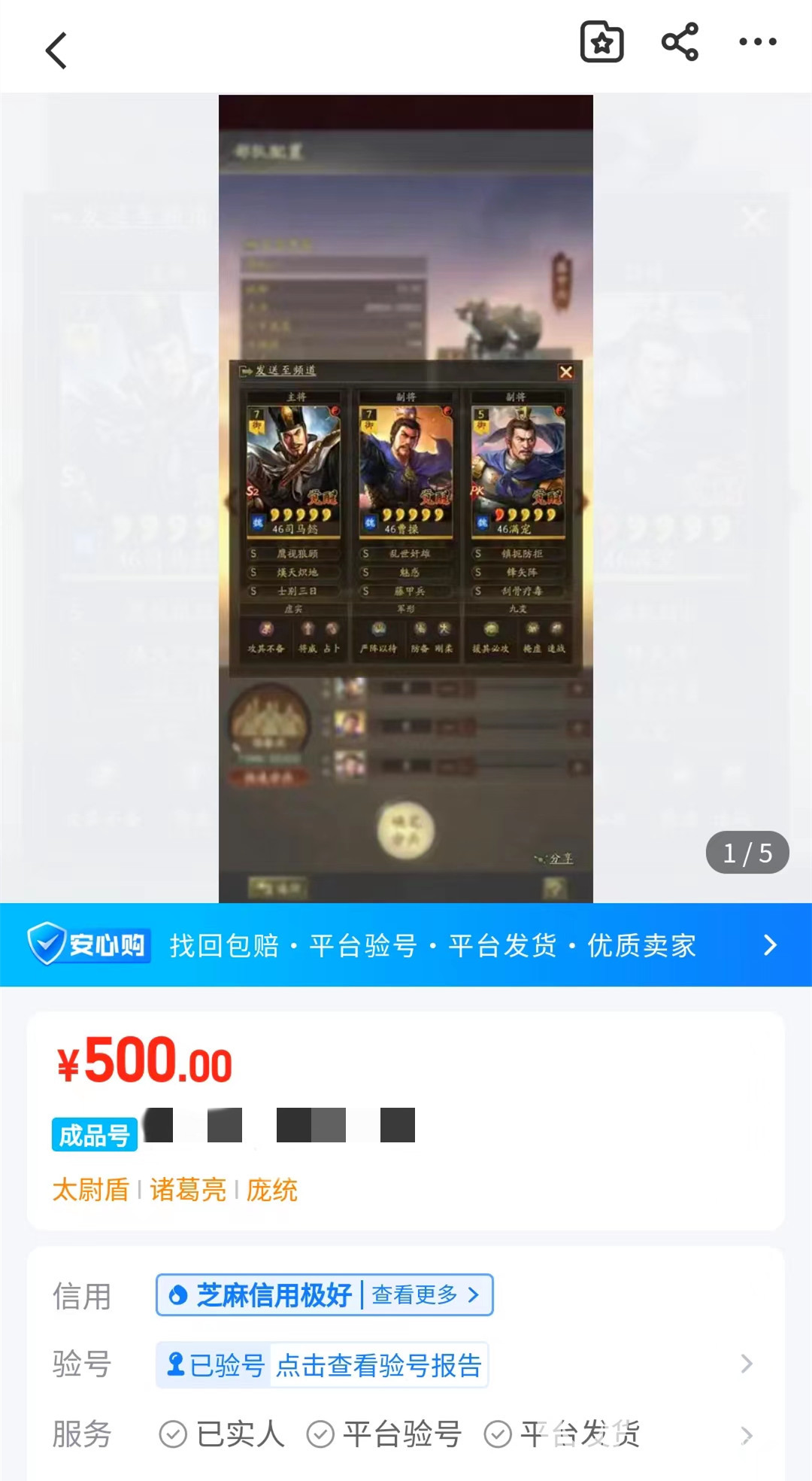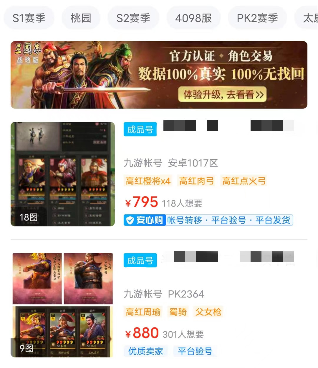 以上就是小编收集到三国志战略版在哪里买号安全的全部信息,需要注意的是,安心购并不是交易猫自带的服务,只针对部分商品,选择服务的商品会带有相关的标志,大家在挑选账号的时候要注意甄别,不要因为价格低便盲目交易。