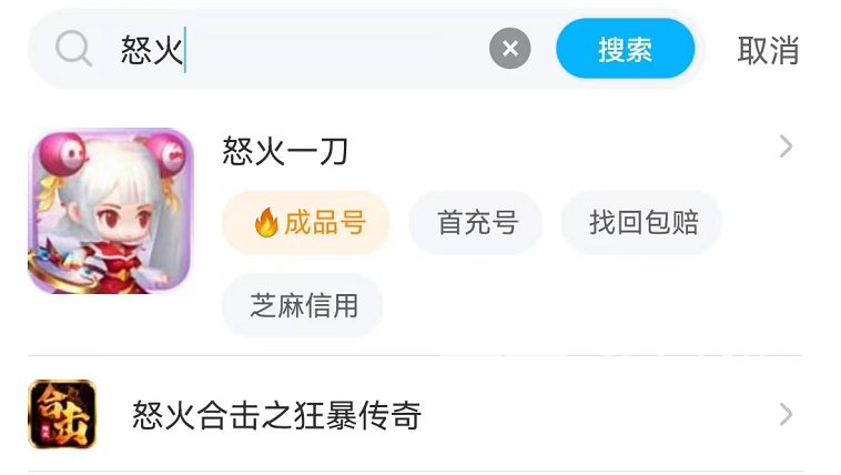 玩家们在进行账号交易之前一定都在网上查过,像这种非热门游戏,一般平台是没有的,但是今天小编要给大家推荐的这款软件不一样,只要是当下有点热度的游戏,我们都可以在其中找到对应的游戏专区,它就是交易猫,这个平台运行这么多年,口碑服务都是很不错的,能让所有的玩家都能购买到满意的账号,直接首页搜索就可以进入怒火一刀的游戏专区。
