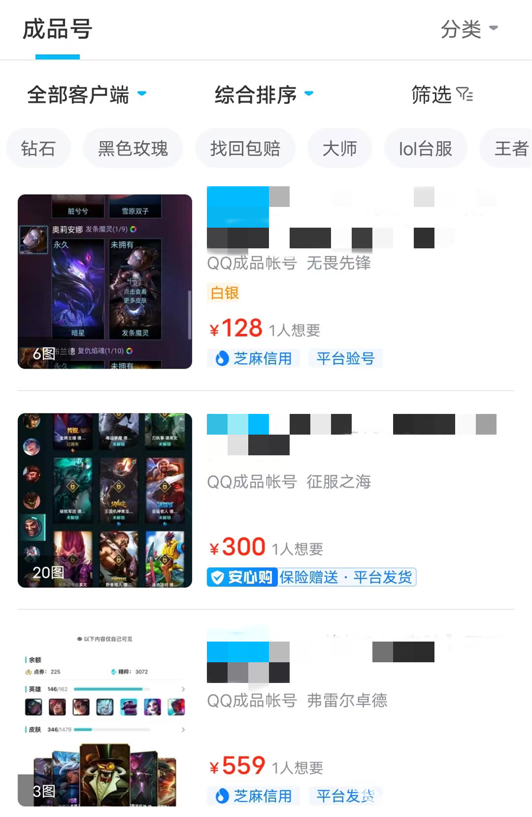 英雄联盟是一款以5V5对战为主要游戏模式的竞技游戏,游戏中的英雄非常多,相关的皮肤等道具同样数量不少,想要将这些全部收集难度非常大,而在游戏成绩方面,想要在排位赛中达到一个高段位也较为困难,因此围绕英雄联盟产生的交易数量十分可观,一个优质的交易平台显得非常重要。