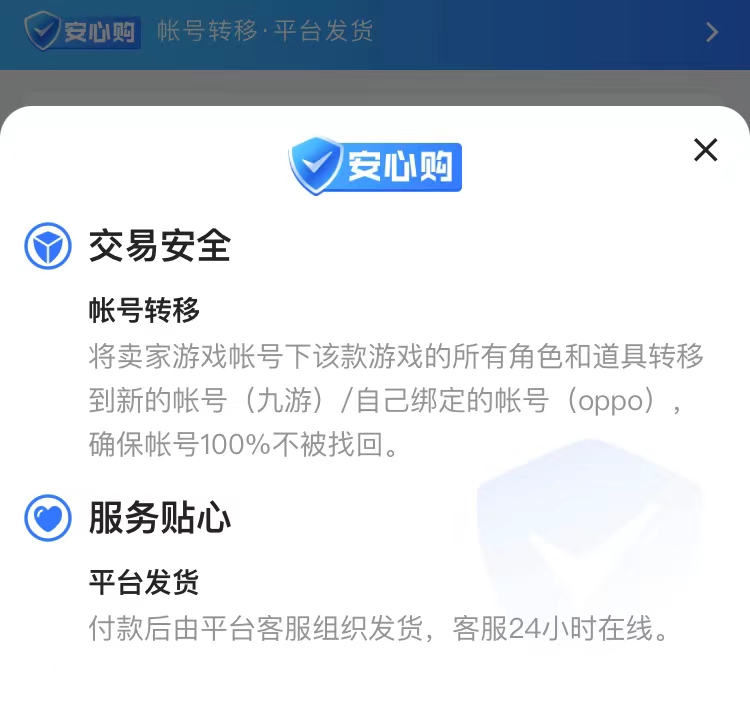 不管是购买什么,游戏账号这样的虚拟商品,大家首要记住的就是安全问题。但在交易猫平台上都不是什么事,细心的玩家可以看到部分的商品都是有安心购服务的,这就是平台给到买家的最大保障。其中的部分服务就包括账号转移,找回包赔、保险赠送,平台发货等等内容,基本上一系列流程都是能让大家放心的。这也大大提高了成交概率,比较玩家们都会优先选择拥有安心购服务的商品购买。