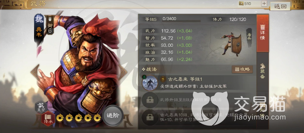 号称“古之恶来”的典韦因为在游戏中有着极强的防御效果经常被大家当作坦克使用,而且自身的战法在典韦收到攻击的时候付得到免伤属性加成,而且对对敌人还能够造成大量的反击伤害。因此这样一个既能够抗伤害有能够反击输出的武将就非常使用了。