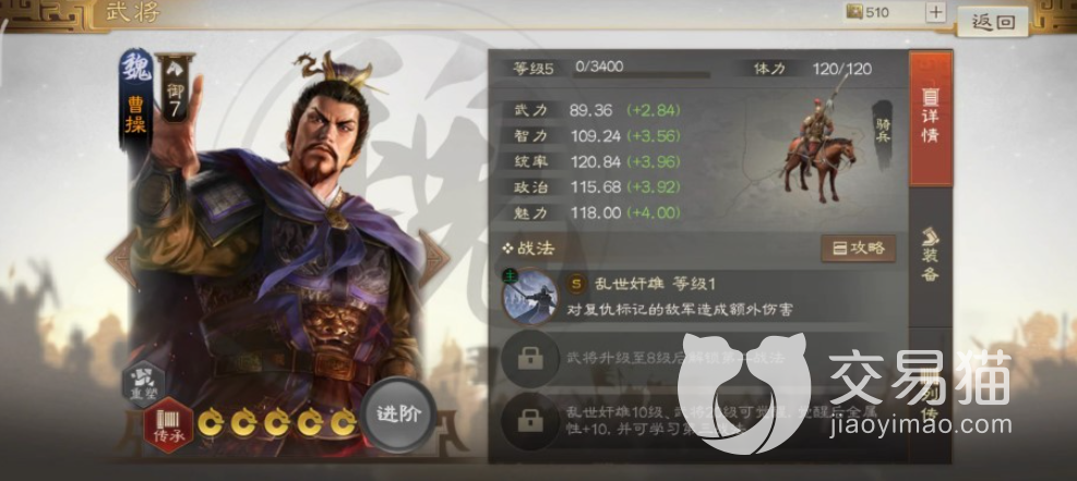 当然玩家的阵容中如果想要添加一个输出型的武将那么曹操是非常不错的选择,因为曹操的输出方式是依靠标记来造成伤害效果,所以可以在后排进行输出,这样其他的武将就能够很好的保护曹操进行输出了。