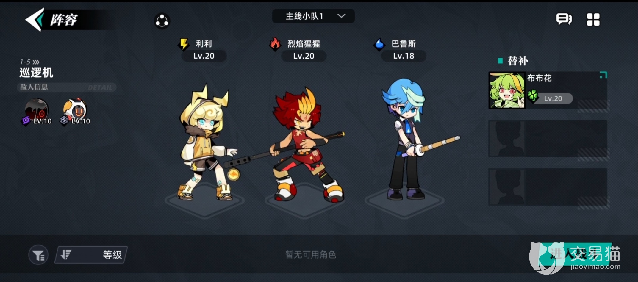 友友们通过这一关卡的搭配阵容是利利+巴鲁斯+烈焰猩猩,替补队员是布布花。这个阵容是比较常见的搭配,就是输出+2个辅助,巴鲁斯和利利都是依靠技能中带来的各种增益与削弱来进行攻击,可以对敌方造成不小的伤害,而烈焰猩猩是初始英雄中伤害最高的,他的攻击力的确比较强,适合在前期刷主线任务的使用,毕竟这个阶段的怪物强度都比较弱,总而这个阵容是很不错滴!