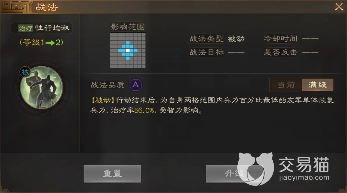向宠在游戏里统率骑兵,5维属性也比较均衡,尤其是统率的属性值比较高。人物自带战法“性行均淑”可以在行动结束之后为自己两格范围内兵力百分比最低的单位恢复兵力,治疗率收智力加成影响。而在战斗向的武将中向宠的智力属性算是比较高的。